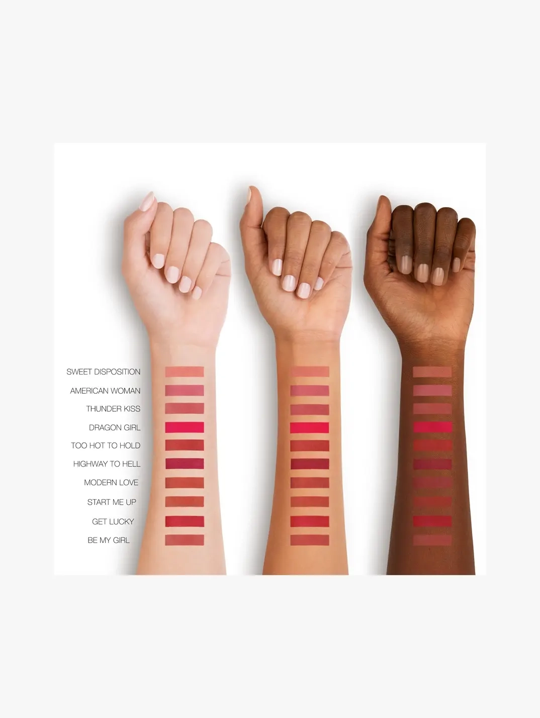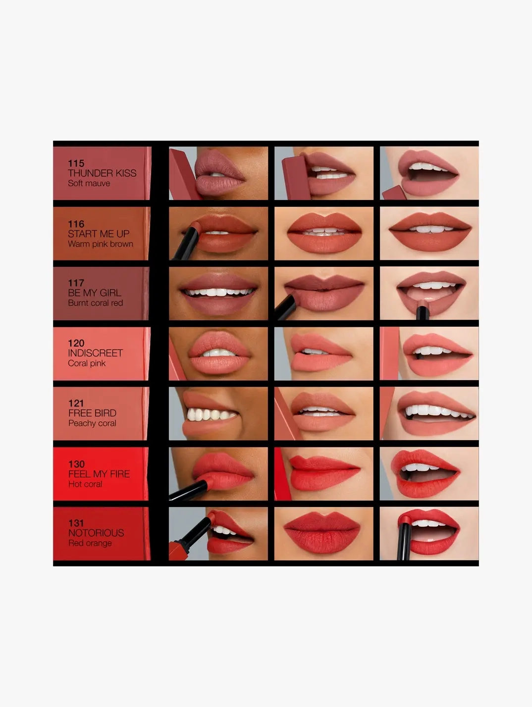 High-intensity matte sensation. Just one swipe glides on bold colour that lasts for 10 hours and sets to a smooth, matte finish. Power Pigment Complex saturates lips with dense color that glides effortlessly and wears comfortably all day. Available in 15 transfer-resistant shades.